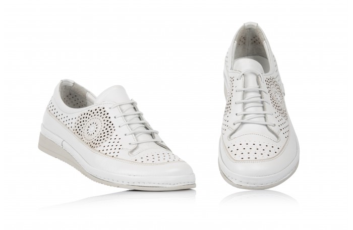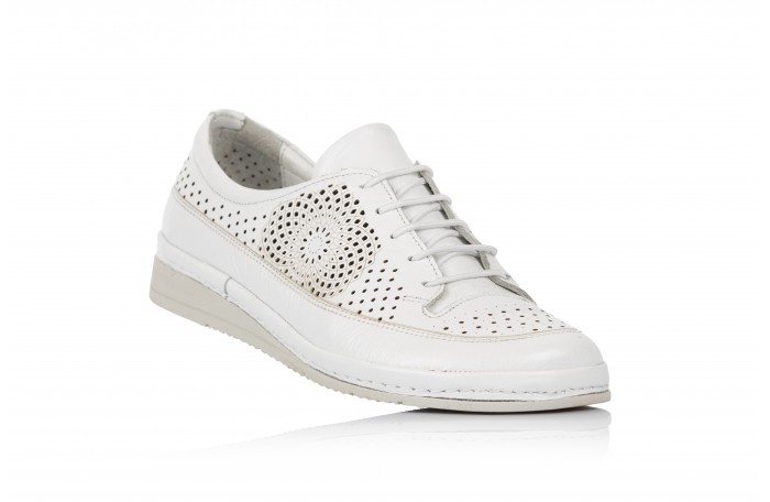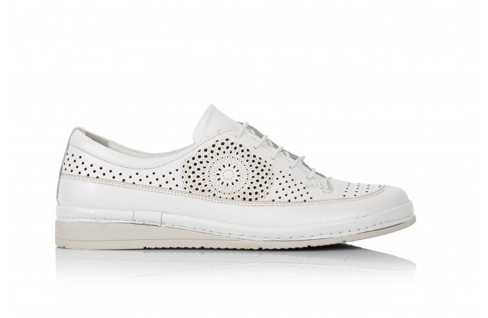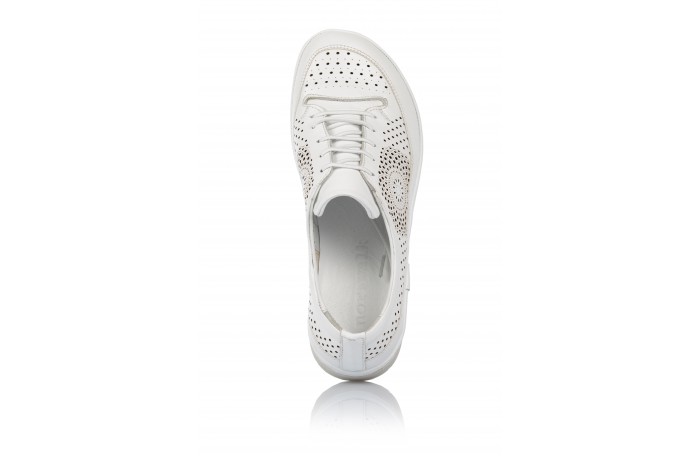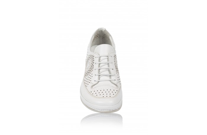NorWalk valkea nahkatennari. Pinta, sisävuori ja sisäpohjallinen nahkaa. Pitsimäinen reiitys antaa ilmettä ja ilmavuutta kengälle. Pujotettava malli. Edessä nauhakiinnitys. Kannan korkeus n. 2,5 cm. Kengät valmistettu Euroopassa.