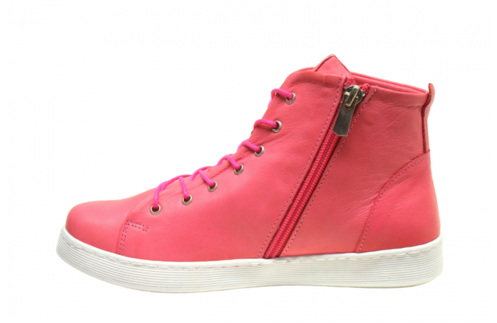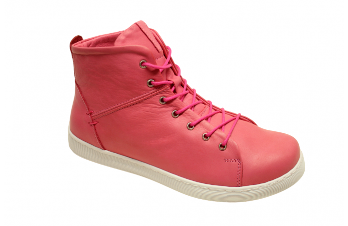 Andrea Contin koralli varsitennari. Pinta-, sisävuori ja irrotettava, pehmeä sisäpohjallinen nahkaa. Erittäin pehmeä nahkamateriaali. Sisäsyrjällä vetoketju ja edessä nauhat. Irrotettavan sisäpohjallisen ansiosta sopii myös omille pohjallisille. Kannan korkeus n. 2 cm. Sama malli myös mustana.