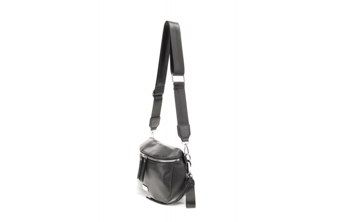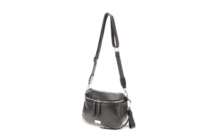 Migantin musta olkalaukku. Pinta keinoainetta. Takana vetoketjullinen tasku. Laukun sisällä vetoketjullinen tasku. Leveä olkahihna. Laukun mitat n. 23 x 09 x 15 cm. Mallista 3 eri väri vaihtoehtoa.