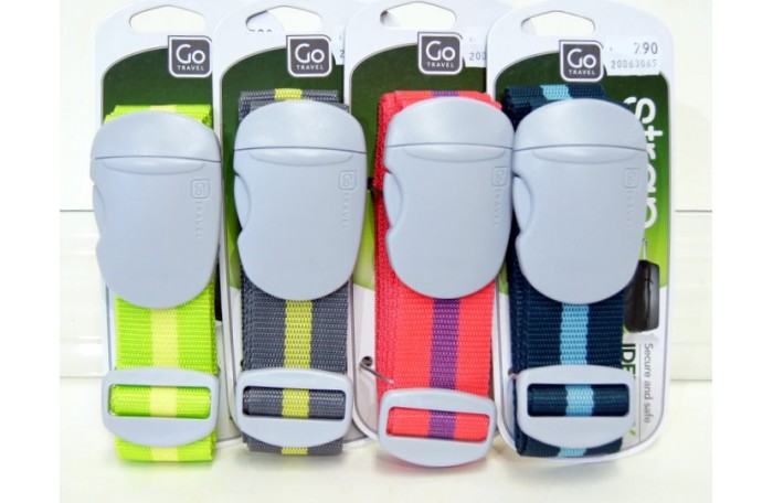 1,7m pitkä ja 4cm leveä matkalaukkuvyö pirteissä väreissä.