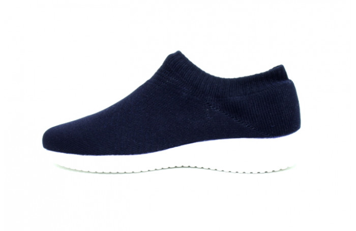 Migantin tumman sininen ns. sukkavarsi tennari. Kenkä on tekstiiliä. Joustaa ja hengittää. Pehmeä, joustava irrotettava sisäpohjallinen. Miellyttävän tuntuinen jalassa. Kannan korkeus n. 3 cm.