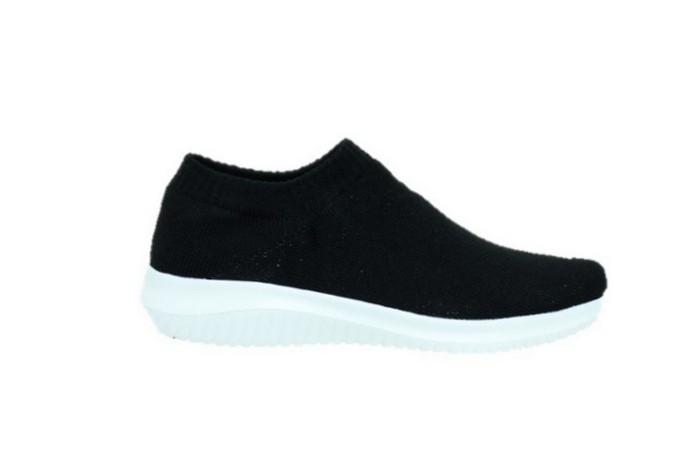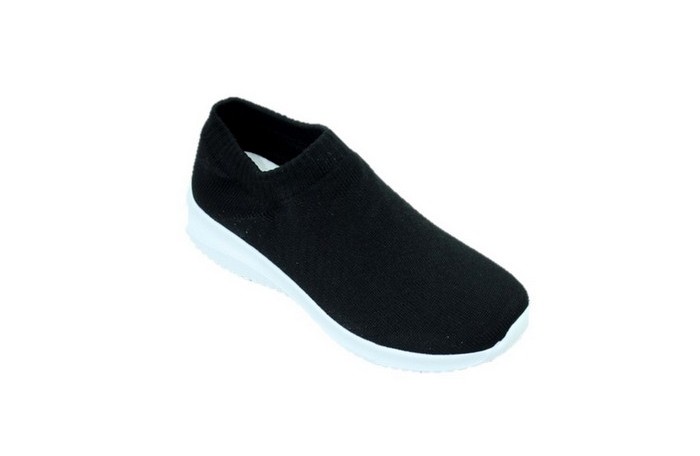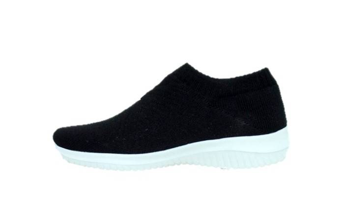 Migantin musta, ns. sukkavarsi tennari. Kenkä on tekstiiliä. Joustaa ja hengittää. Pehmeä, joustava irrotettava sisäpohjallinen. Miellyttävän tuntuinen jalassa. Kannan korkeus n. 3 cm.