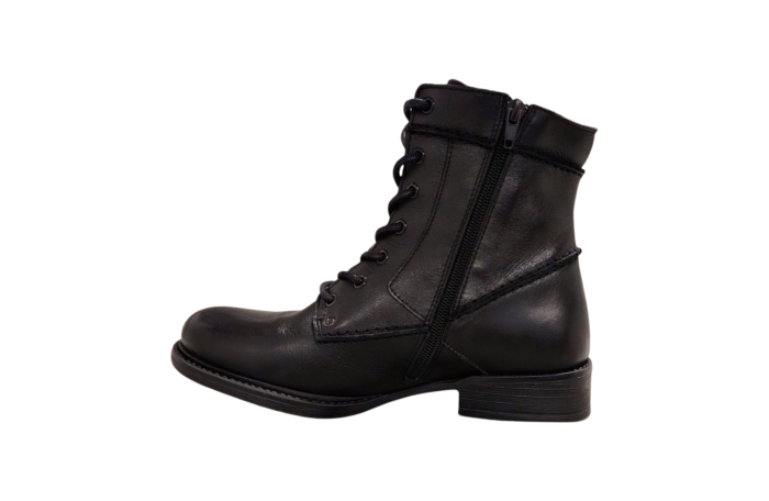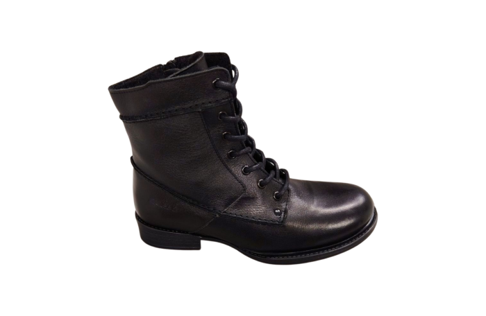 Askeleen musta Saaga nilkkuri. Askeleen sirompi, normilestinen nilkkuri. Pinta nahkaa. Ohut vuori ja lämpöpohjallinen. Sisäsyrjällä vetoketju ja edessä nauhoitus. Pitävä ulkopohja. Kannan korkeus n. 3 cm.