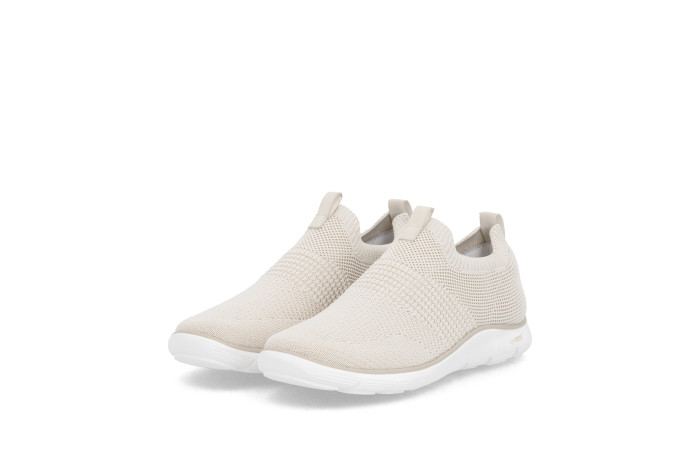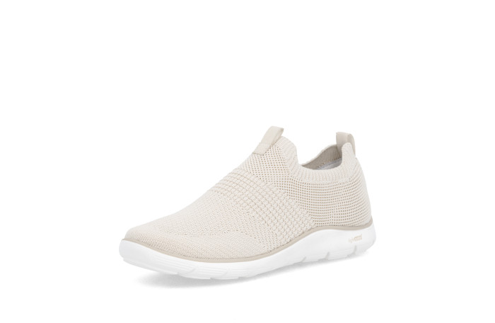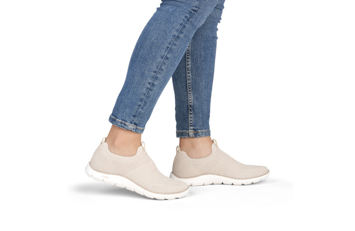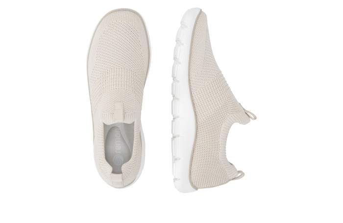 Remonten pellavan värinen kangastennari. Pinta tekstiiliä. Jalkineessa on pehmeä, irrotettava Soft sisäpohjallinen. Pujotettava malli. Kannan korkeus n. 3 cm.